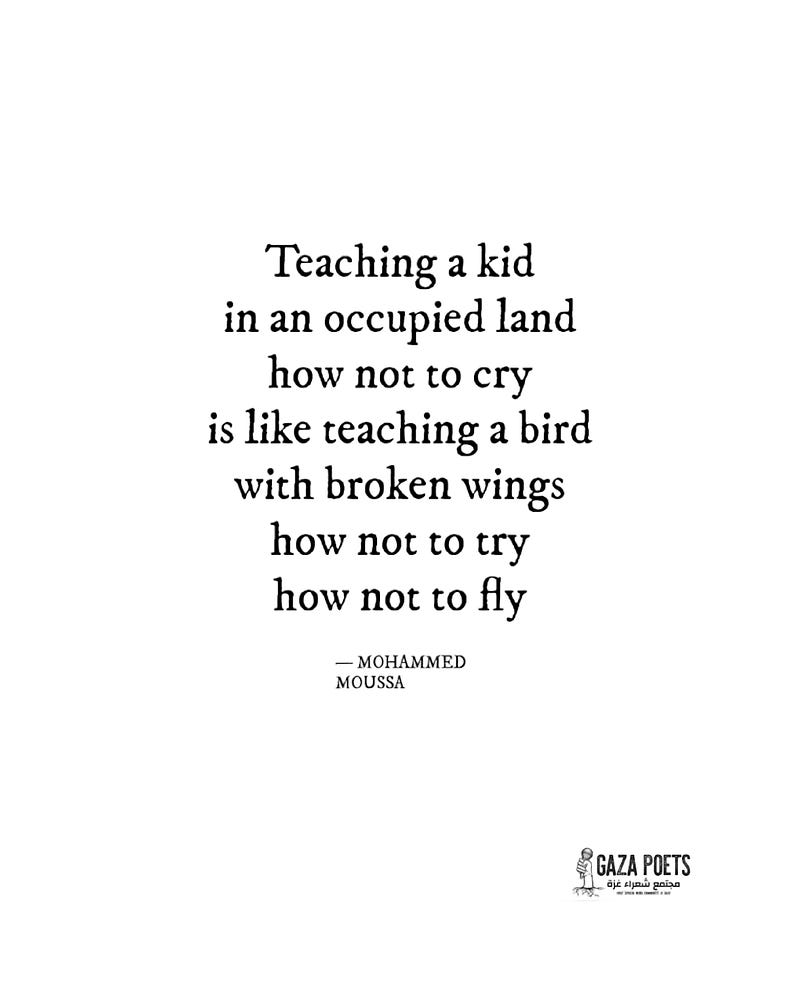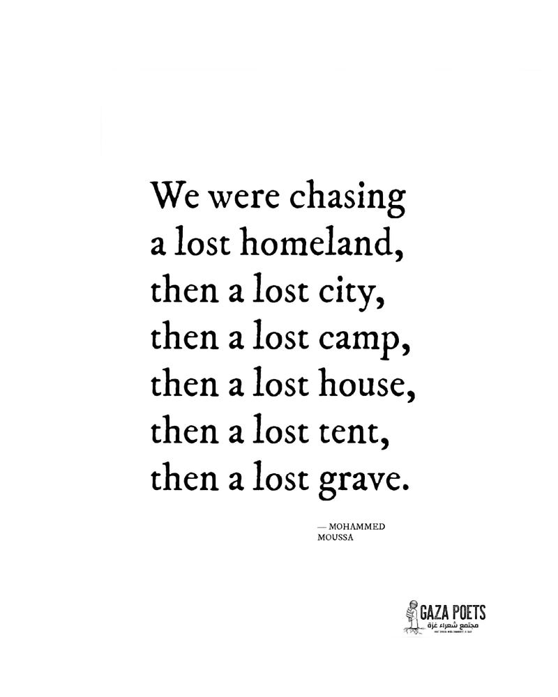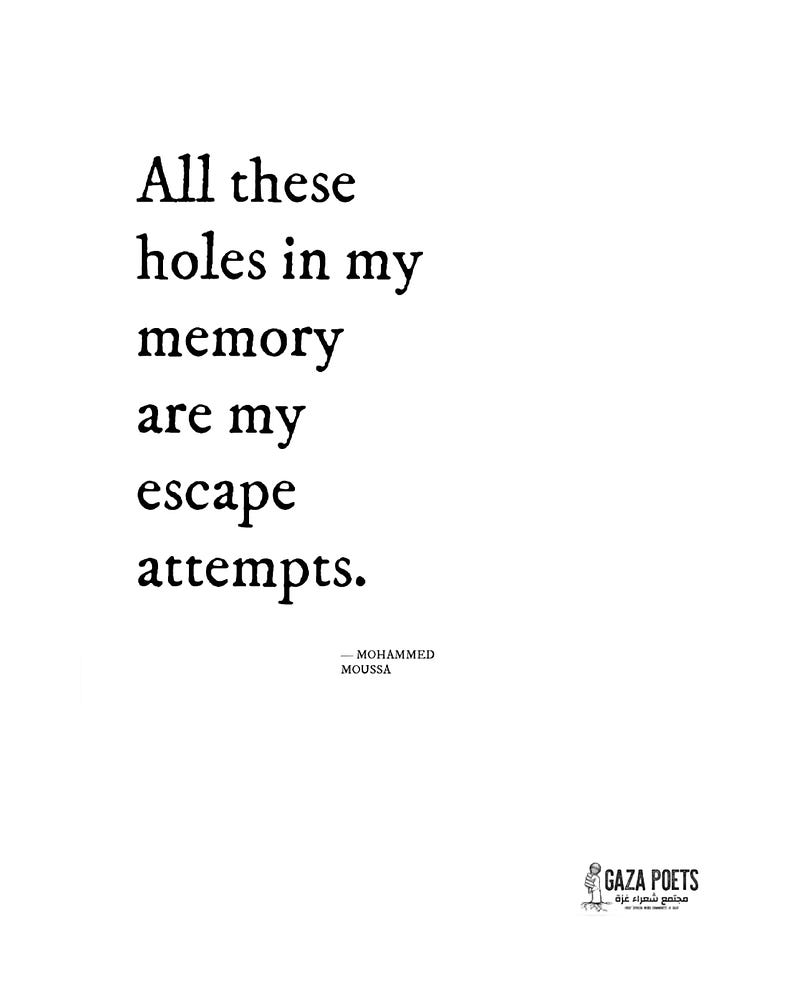 I came across the work of Muhammad Moussa through Gaza Poets Society (@gazapoetssociety), and I haven’t been able to look away since.