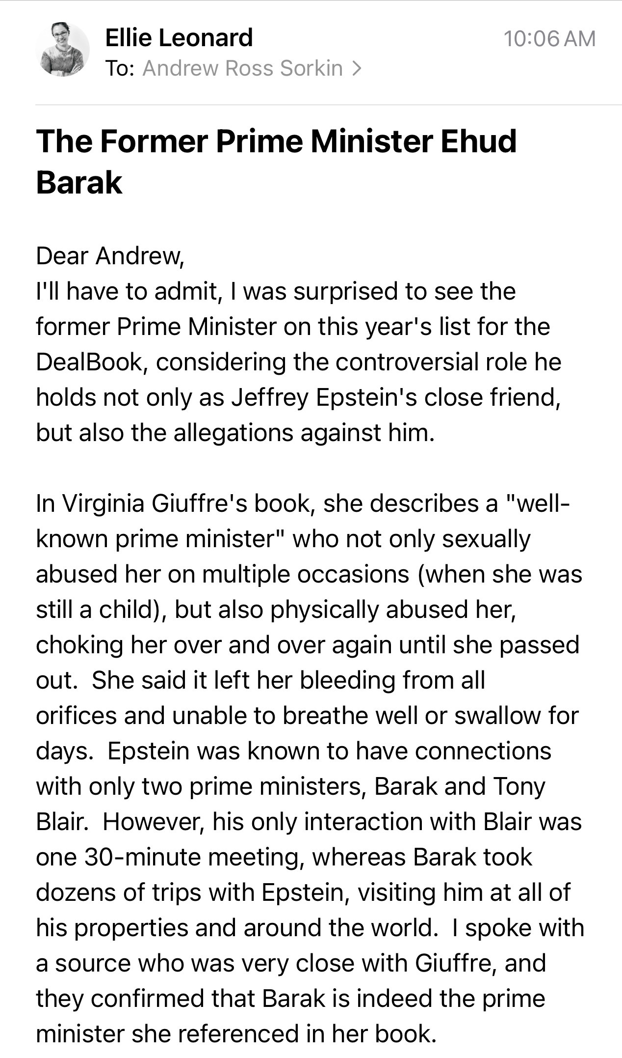 Andrew knows me, and I know him, and when I learned the Ehud Barak was invited to the New York Times DealBook summit to speak, I immediately contacted him.