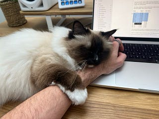 It's a nice way to 1) keep myself accountable on reading, and 2) sharing more on social media. Also, my cat likes to sleep on my hand when I do so.