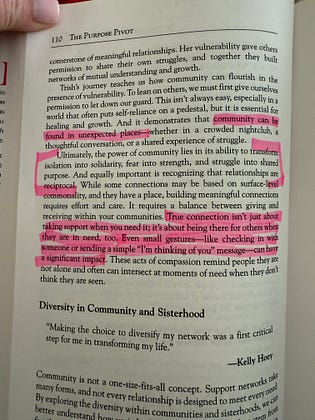 I am reading this great book The Purpose Pivot by Melissa Gonzales and came across this passage which totally resonated with me. As some who has been actively and intentionally rebuilding my community starting with joining a female founded co-working community The Hivery founded by Grace Kraaijvanger I have found we are all not just showing up for ourselves, but we are showing up for each other. Whether someone is hosting a member meet up or for a new friend who just published a book and hosting a book signing gathering at a local book store, we are supporting, collaborating, and becoming friends in the most beautiful way. AND!!! I am meeting the most incredible, diverse women who I would’ve otherwise never had the opportunity to connect with, which has been incredible. So grateful for my community.