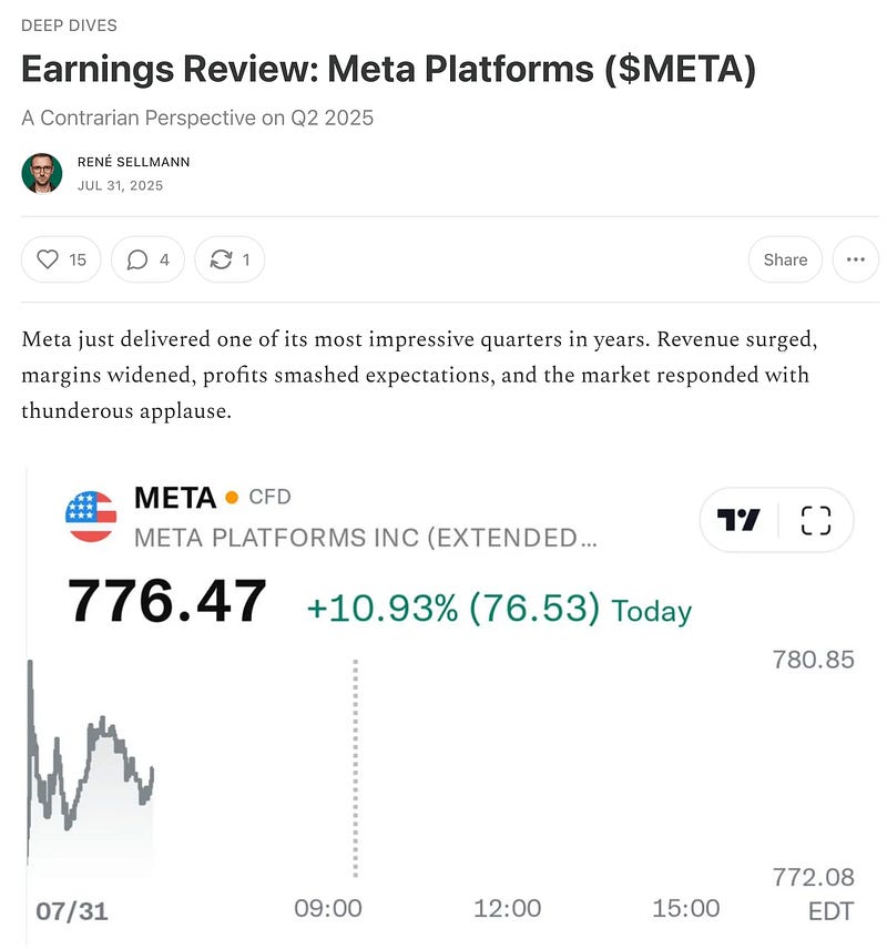 I remember receiving a lot of backlash then with $META's stock soaring to almost $800/share after Q2.