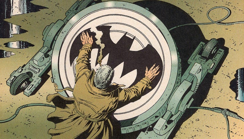 Cool “Year One” moments — we open on a splash page of a fully-costumed Batman walking across the manicured lawn of Wayne Manor in broad daylight.