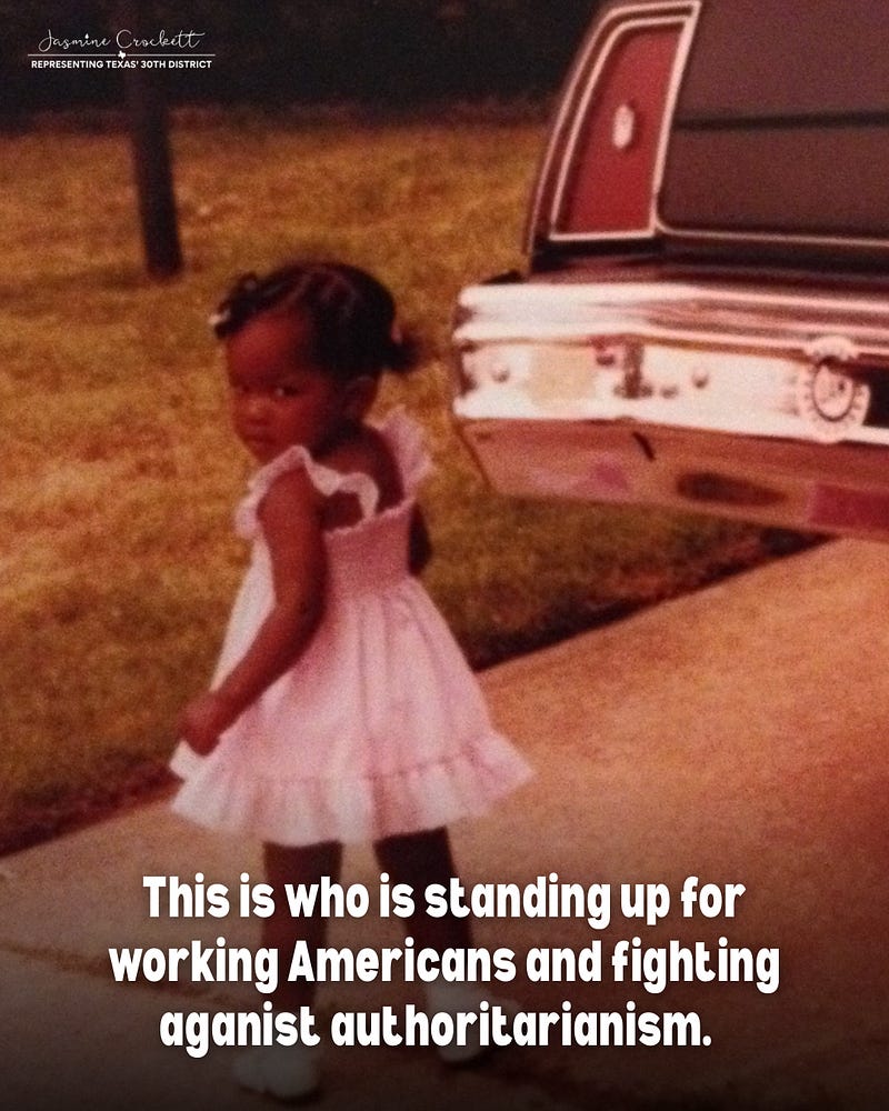 This is who is standing up for TX-30 every day. If only little Jasmine could see…