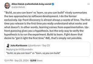 I am in the “build, so you can learn” camp as well.