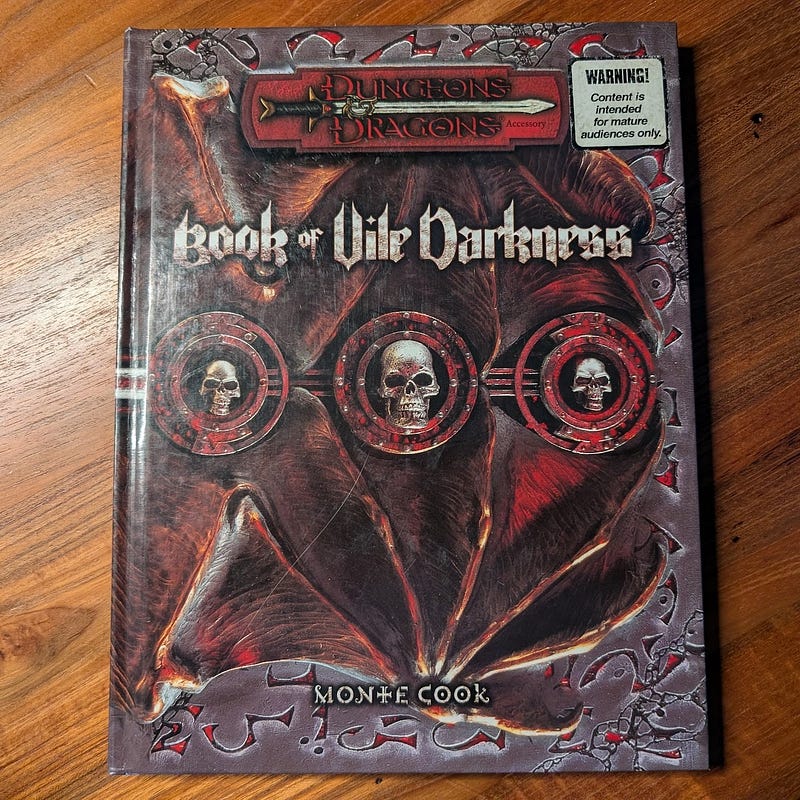 In the 1980s, D&D publisher TSR was trying to reassure parents during the satanic panic. By 2002, Wizards of the Coast was publishing the Book of Vile Darkness, a supplement that warned on the cover that it was intended for a mature audience.
