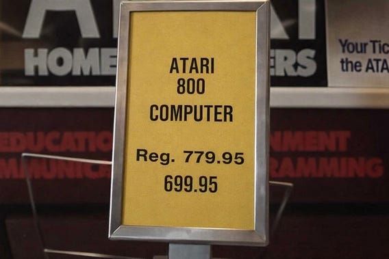 Atari 800 Computer Sale Price in 1982. $699.95 would be about $2,400 today if adjusted for inflation.