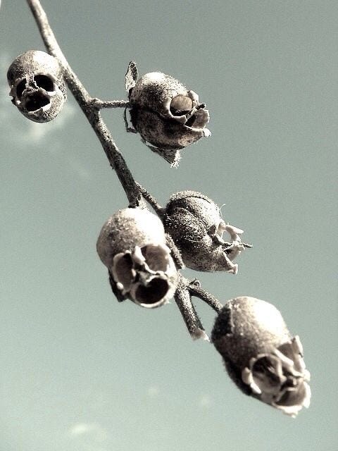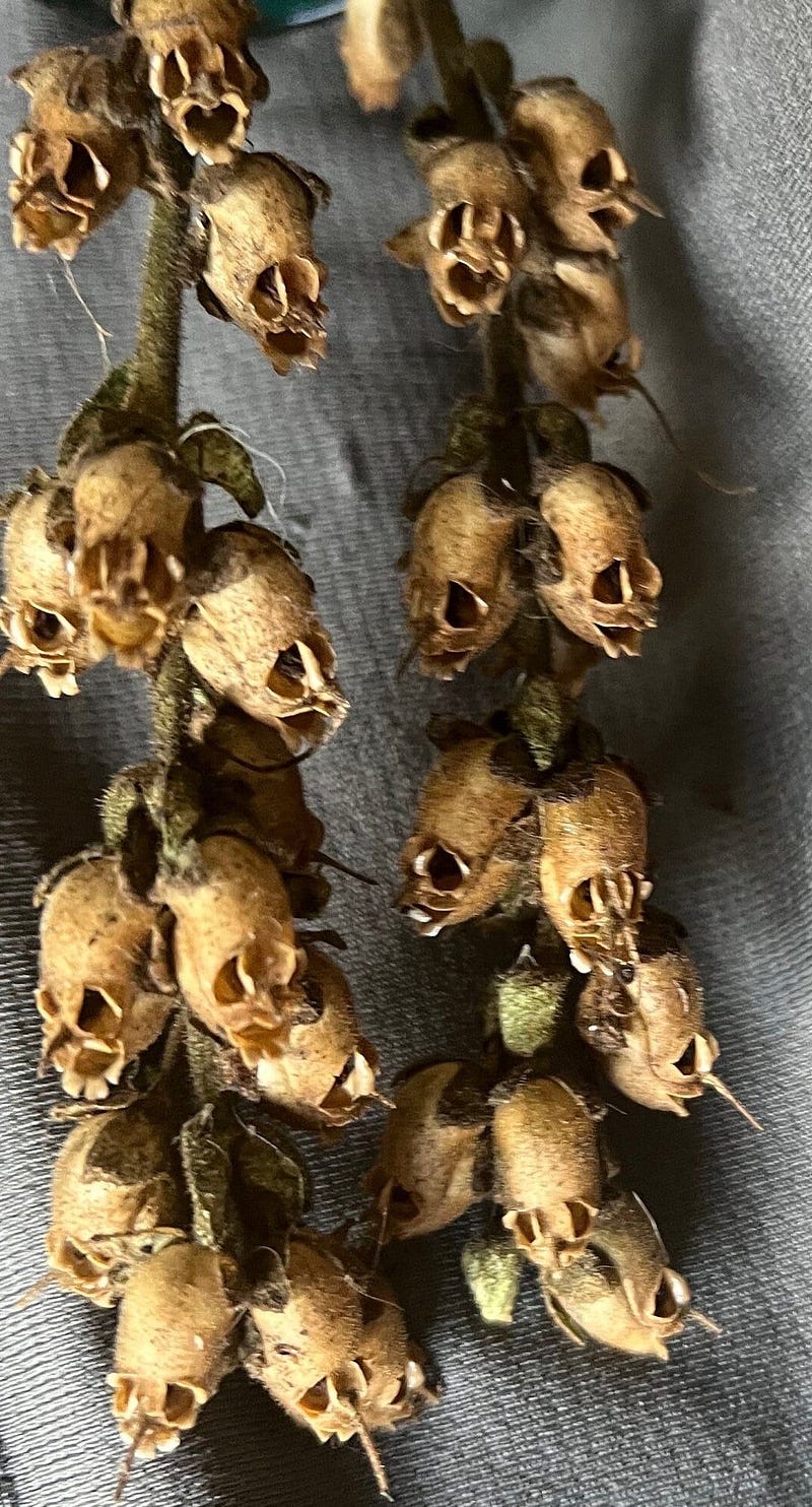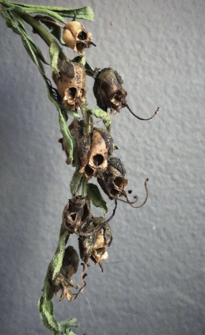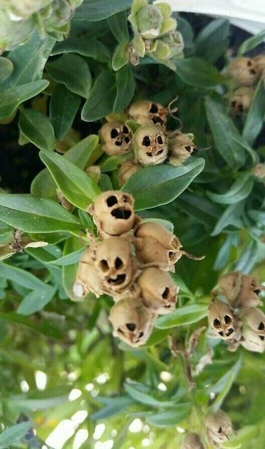 Dead snapdragon flowers mimic impish skulls