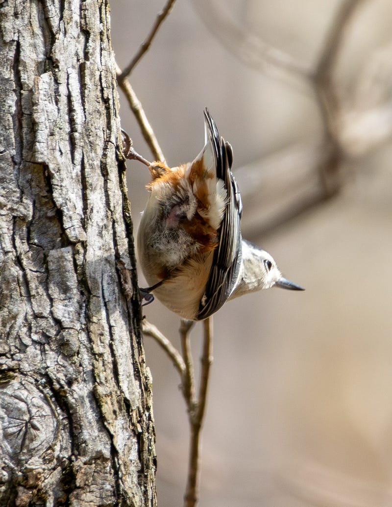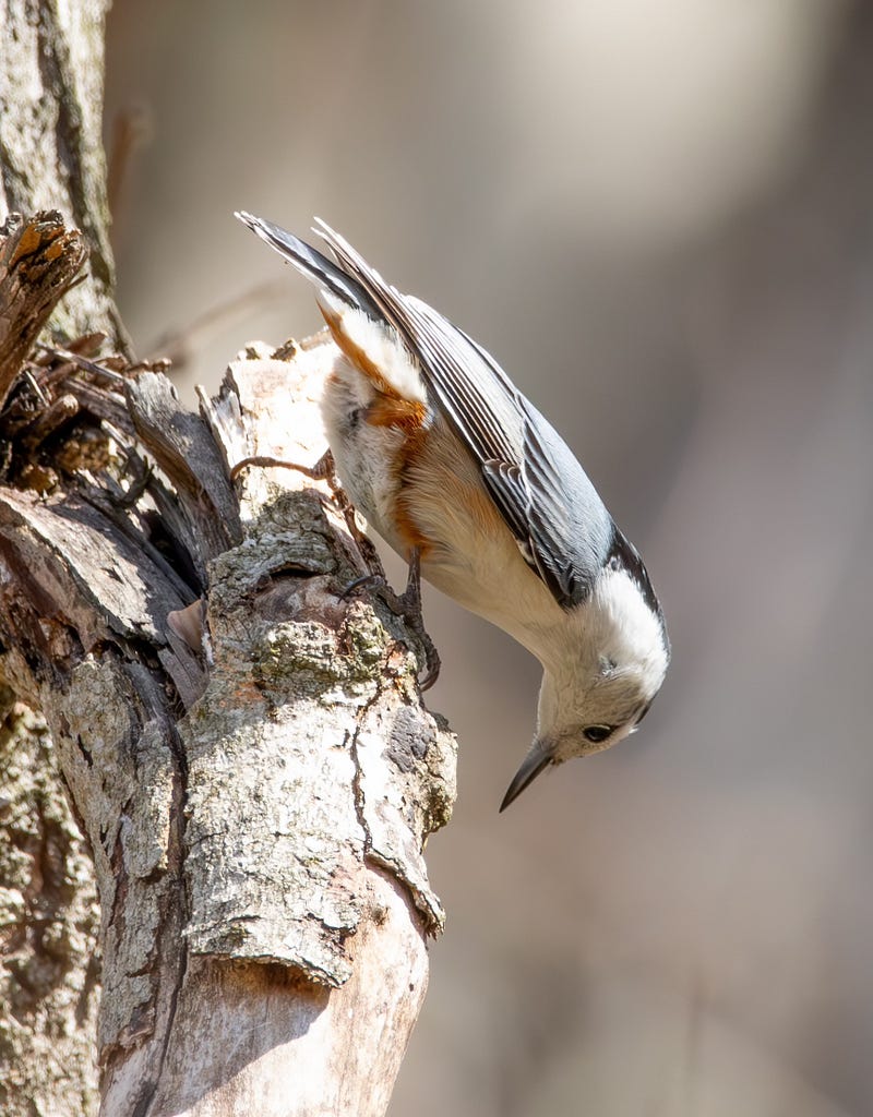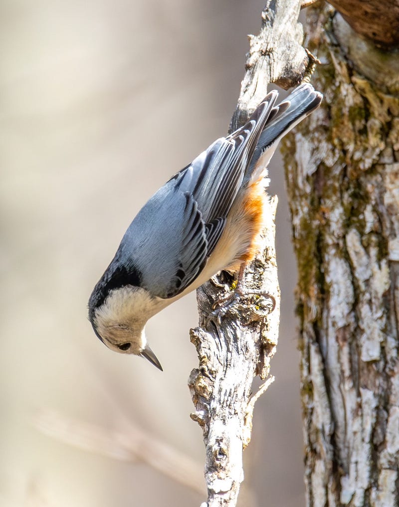 This little white-breasted nuthatch was showing me all his/her angles when I encountered him/her last week in the woods!