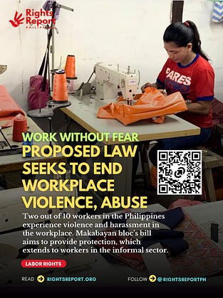Two out of 10 workers in the Philippines experience violence and harassment in the workplace. Makabayan bloc’s bill aims to provide protection, which extends to workers in the informal sector.