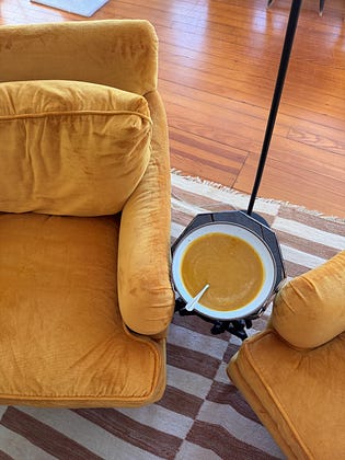 matching my soup to my reading chair 🧡