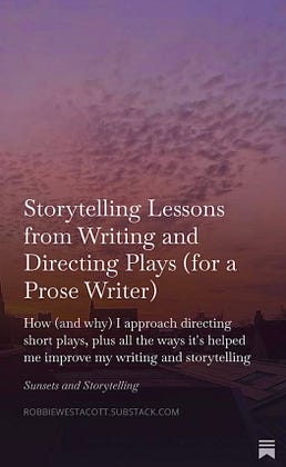 My latest article shares how and why I approach directing short plays as a prose writer, and breaks down all the ways it's helped me improve my writing and storytelling.