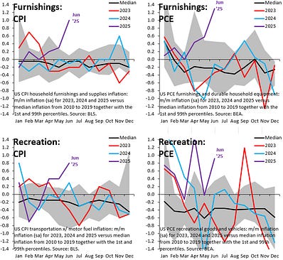 Two categories in the CPI and PCE indices - furnishings and recreational goods - are currently adding almost 10 bps to monthly inflation over what we'd normally see at this time of year. These are goods imported mostly from China. A huge inflation shock...