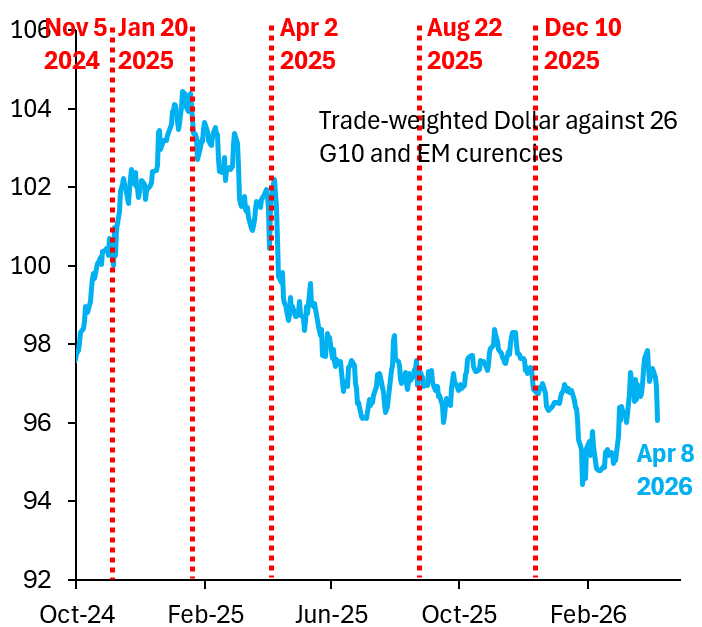 The Dollar is tumbling as I forecast in my posts predicting a ceasefire. USD will now unwind all its rise from the past month, which was entirely due to short-term safe haven flows that'll now reverse. We're back to Dollar weakness for the rest of 2026...