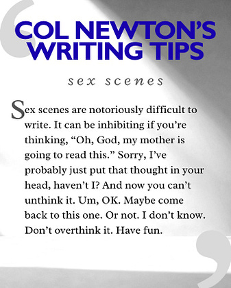 Col’s been away. But he’s back. Tackling perhaps the thorniest subject of all for writers. For more of Col, see my novel Cover Story:
