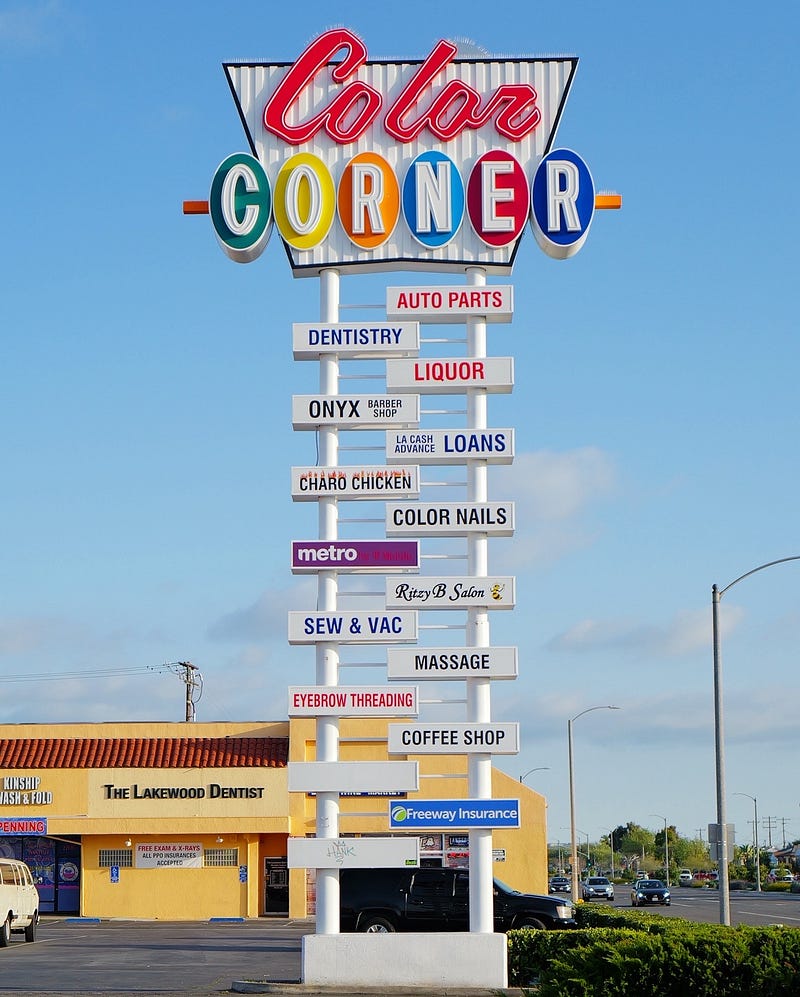 The glorious Color Corner in Lakewood, California is a vivid reminder of the kind of signage we used to make and could still make again.