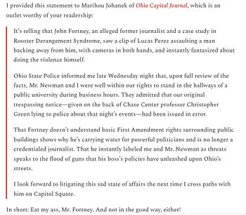This week's Rooster in Review recaps my response to alleged former journalist Jon Fortney and his delusional violent fantasies.