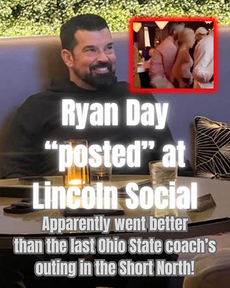 A source tipped The Rooster to Ohio State football coach Ryan Day being "posted" at Lincoln Social around 7:15 p.m. on Saturday, April 3.