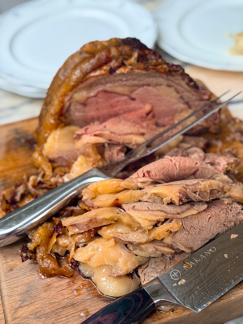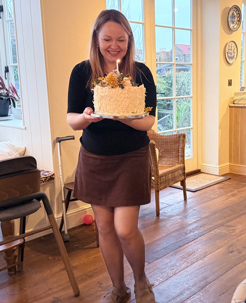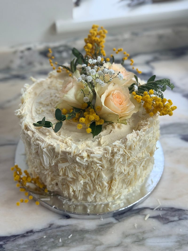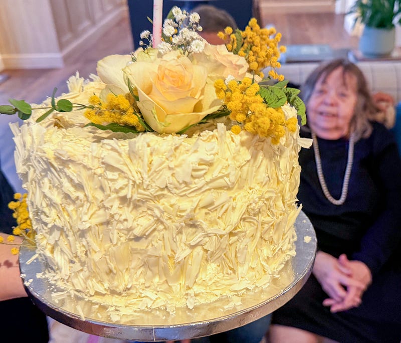 Yesterday we celebrated eight decades of my darling mama. This time last year she was recovering from a scary stay in hospital and we didn’t know if she was going to make it to this amazing milestone. I am beyond grateful that she has, and it had to be an extra special birthday surprise with her family surrounding her, and a menu of her absolute favourites. I went very classic with prawn cocktail and champagne, followed by roast rib of beef with all the trimmings, including cauliflower cheese. Quite daunting cooking for the queen of roasts but she was very happy. The cake was a lemon butter sponge with white chocolate and mascarpone icing and homemade lemon curd, with shaved white chocolate, roses and mimosa to decorate. We drank a vintage Margaux from 2002 which mum had been saving. Such a special day and I know dad would have loved it too. The rib of beef and cake recipe are both from this here newsletter.