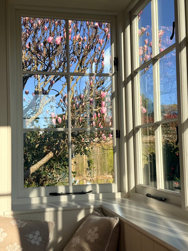 #magnoliawatch — our tree through the window of the dining nook. Basically the reason we built it!