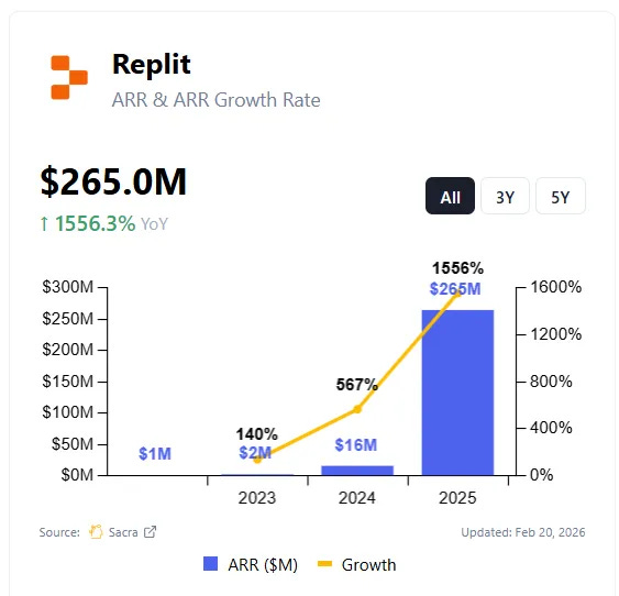 eplit grew from $10M to $100M in ARR in just over five months during early 2025. By September 2025, the company reported $150M in annualized revenue and closed a $250M round at a $3B valuation. By the end of fiscal year 2025, total revenue reached $240M. The platform now has 40 million total users, 150,000+ paying customers, and is used at 85% of Fortune 500 companies. In March 2026, Replit tripled its valuation to $9B with a $400M Series D, and is now targeting $1B ARR by year-end.