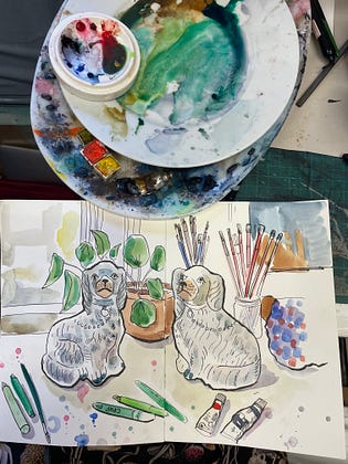 Did a little bit of lunchtime sketchbooking at Ella Beech Art Club today! Wish I had some fine porcelain dogs like these….