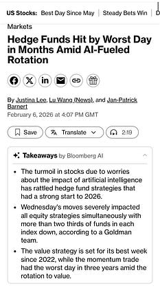 Wednesday was the largest drawdown for multi-strategy hedge funds since April. Bloomberg cited GS and JPM prime. Also painful for quants as momentum trades unwound. Healthy reminder not to get too excited about last year’s strong returns and inflows for the industry.