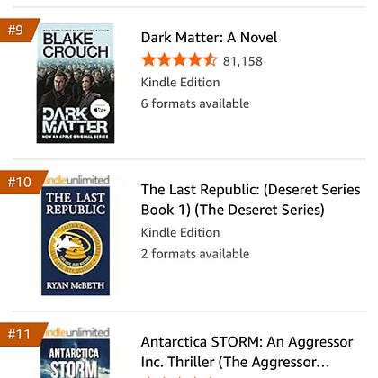 My new novel The Last Republic is #10 on Amazon’s Technothriller Bestsellers. Thank you to everyone who made that happen.