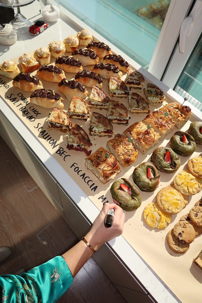 I made scallion pancake bacon, egg, cabbage slaw sandwiches and Dubai chocolate salt bread 🥓🍳