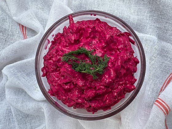 I had the most incredible beetroot dip at a Polish friend’s house the other night, and have been trying to replicate it ever since. I thought I followed her verbal recipe to the letter, but it doesn’t taste as addictively good as hers. What am I missing? This was 300g cooked, grated beetroot, 1 cup Greek yoghurt, crushed garlic, a dash of horseradish, sea salt, tons of chopped dill, and some lemon juice. It’s good, but lacks a certain je ne sais quoi…