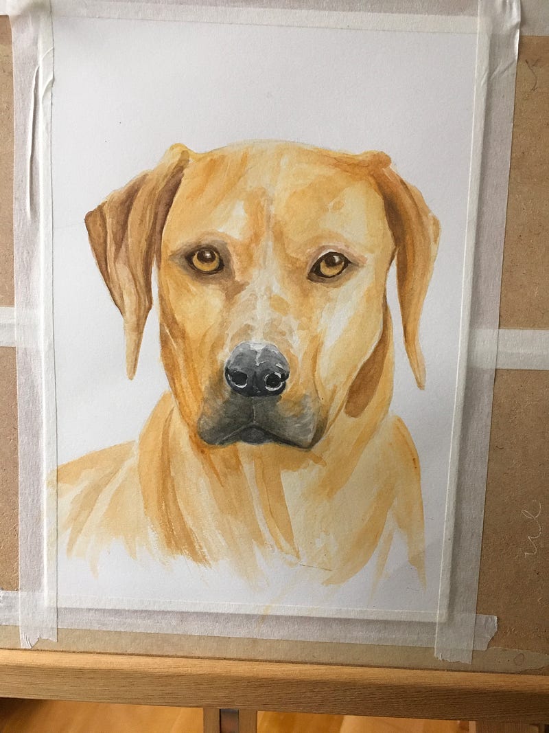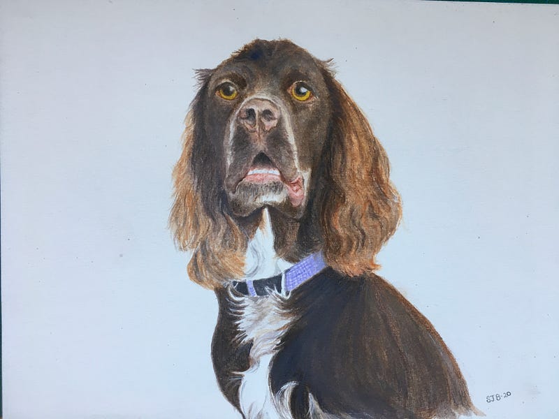 A bit of a switch up today. I painted the first dog just to see how it went. My cousin then asked me to paint her two daughters dogs, this was followed by a friend asking me to paint her dog, and as a birthday gift I painted my sisters dog just prior to it going to doggy heaven, the last is our grandsons dog which was done in graphite, all the others are watercolour on 300gsm watercolour paper. DONT anyone ever ask me to do another, I’m done…
