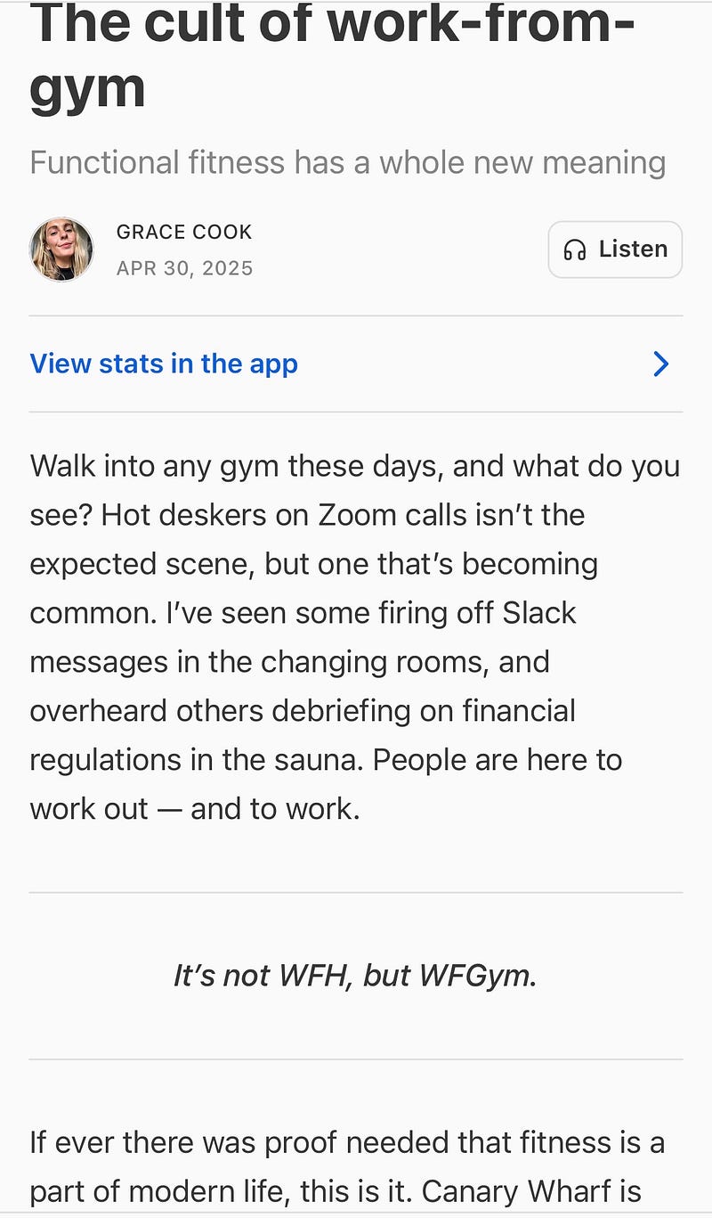 The New York Post just reported a story about the work-from-gym culture that I first reported on Salty last April.