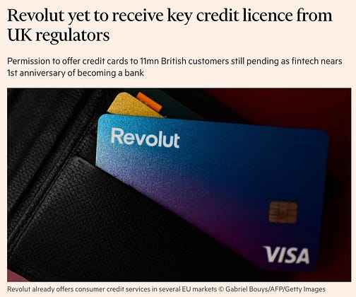 🚨 BANKING: Revolut yet to receive key credit licence from UK regulators