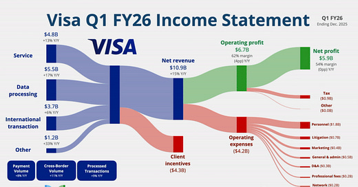 Here’s my take: payments is consolidating around scale and governance, not hype. Visa’s cash machine (with $6.4B in quarterly free cash flow and $21.1B left in buybacks) shows what mature infrastructure looks like. At the same time, the real innovation is structural — agentic credit assembly lines, programmable deposit tokens, and onchain liquidity models. The winners won’t just ship new features; they’ll control the architecture those features run on.