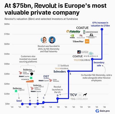 Revolut’s operating model supports this positioning. It is no longer a neobank. It is a multi-product financial infrastructure layer: FX, cards, trading, crypto, insurance, lending. Revenue diversification reduces single-vertical risk and justifies platform multiples rather than bank multiples.