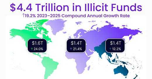 The global financial system is facing a structural crisis. In 2025, illicit financial activity surged to an estimated $4.4 trillion, a figure that represents a $1.3 trillion increase over just two years. This 19.2% compound annual growth rate indicates that financial crime is not merely increasing; it is industrializing. This surge means legacy compliance models are failing. Traditional rule-based systems and manual human review are mathematically incapable of keeping pace with adversarial AI.