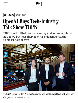 The news that OpenAI is acquiring TBPN stood out to me because it signals a deeper shift in how companies think about creators, moving from seeing them as distribution channels to treating them as part of the core infrastructure for communication and trust.