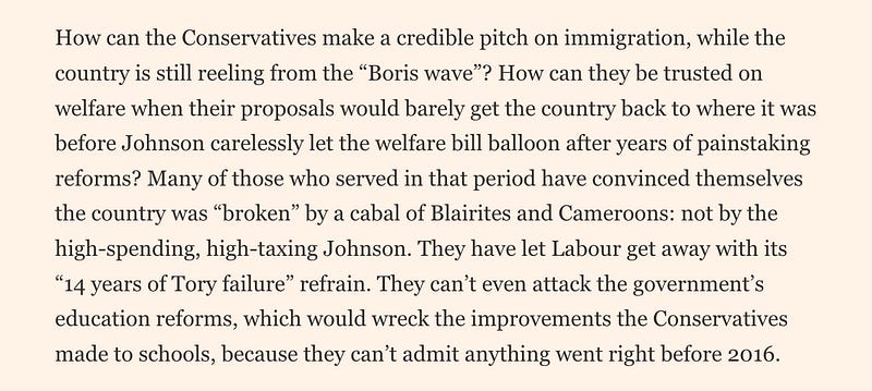 I do agree that the Tories under Badenoch need to be much more detailed and serious about economic policy than they have been. Mel Stride in particular, with his focus on tax giveaways to different voter blocs, seems out of touch with how hated the Tories are and how far they are from power.