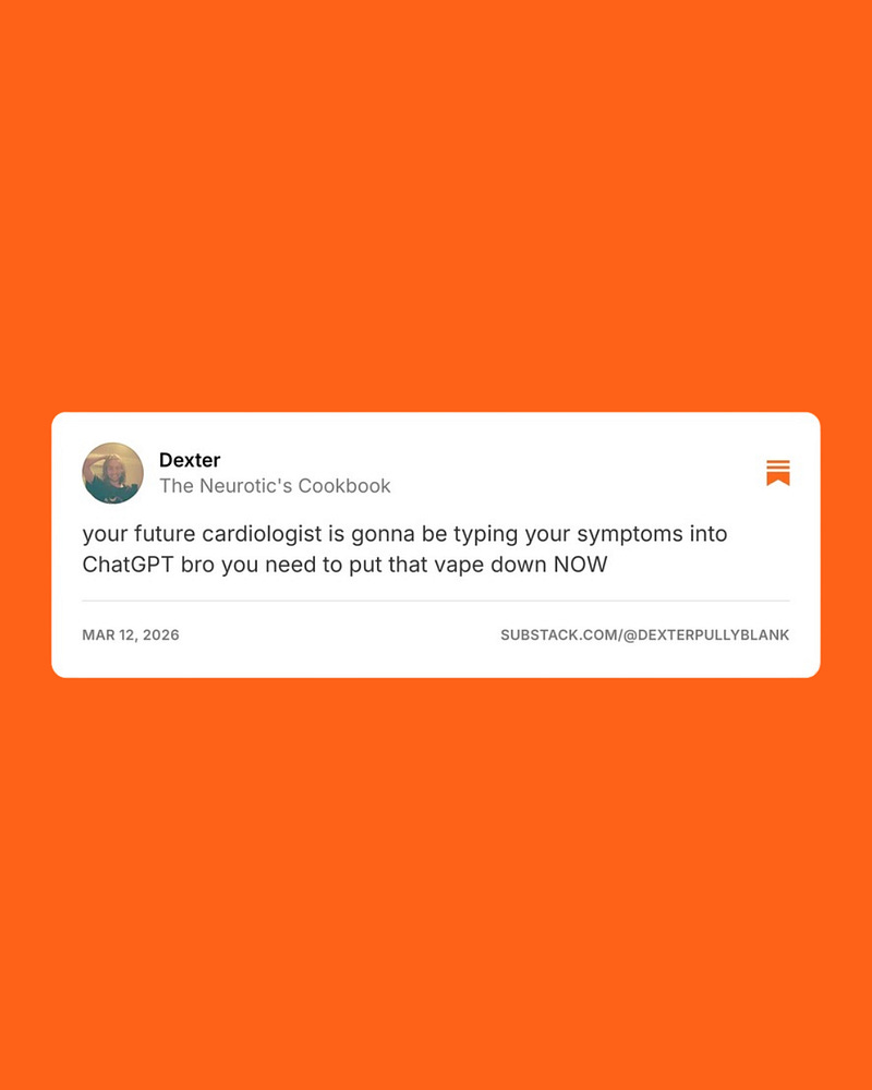 I'm on Substack. I'm on Instagram. Substack is on IG too, and I'm thinking of unfollowing them. They post their curated list of Notes, and they're never as good as the ones that I find on here.