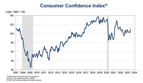 Consumer confidence jumped in June. From The Conference Board: “Consumer confidence improved in June to its highest level since January 2022, reflecting improved current conditions and a pop in expectations… Assessments of the present situation rose in June on sunnier views of both business and employment conditions. Indeed, the spread between consumers saying jobs are ‘plentiful’ versus ‘not so plentiful’ widened, indicating upbeat feelings about a labor market that continues to outperform. Likewise, expectations for the next six months improved materially, reflecting greater confidence about future business conditions and job availability.“ conference-board.org/to…