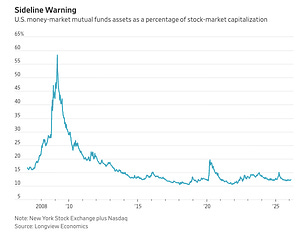 "$7.7 trillion ain’t what it used to be: Compared with the combined market capitalization of stocks on the New York Stock Exchange and Nasdaq, he points out that it’s on the low side, at about 12%." - Spencer Jakab on "cash on the sidelines" wsj.com/finance/stocks/…