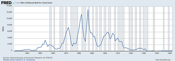 🛤️Miles of railroad track built per year in the U.S. (HT Morgan Stanley)