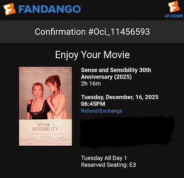 On Jane’s 250th birthday, I celebrated by going to the 30th anniversary showing of the best film adaptation of her work. I realize I'm making a bold claim there, and the competition is mighty fierce.