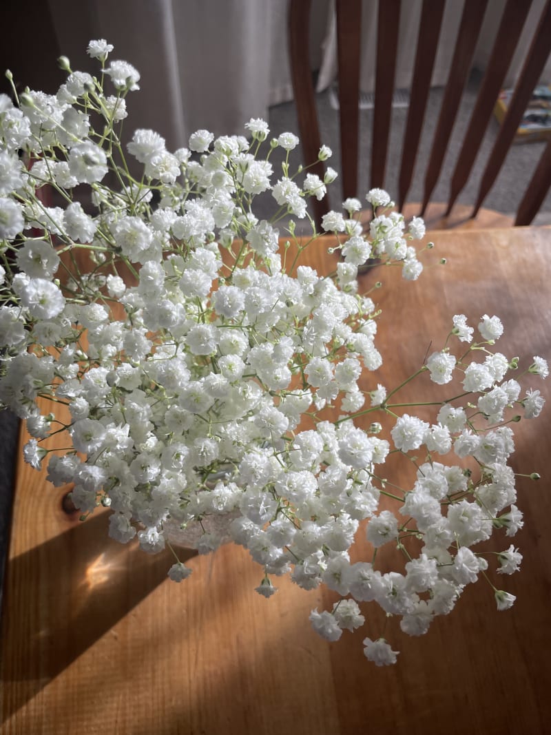 Took the kids to the grocery store right before naptime which was a pretty big mistake but hey we made it and also got some pretty baby’s breath that’s sparkling in the sunlight on the table now !!!