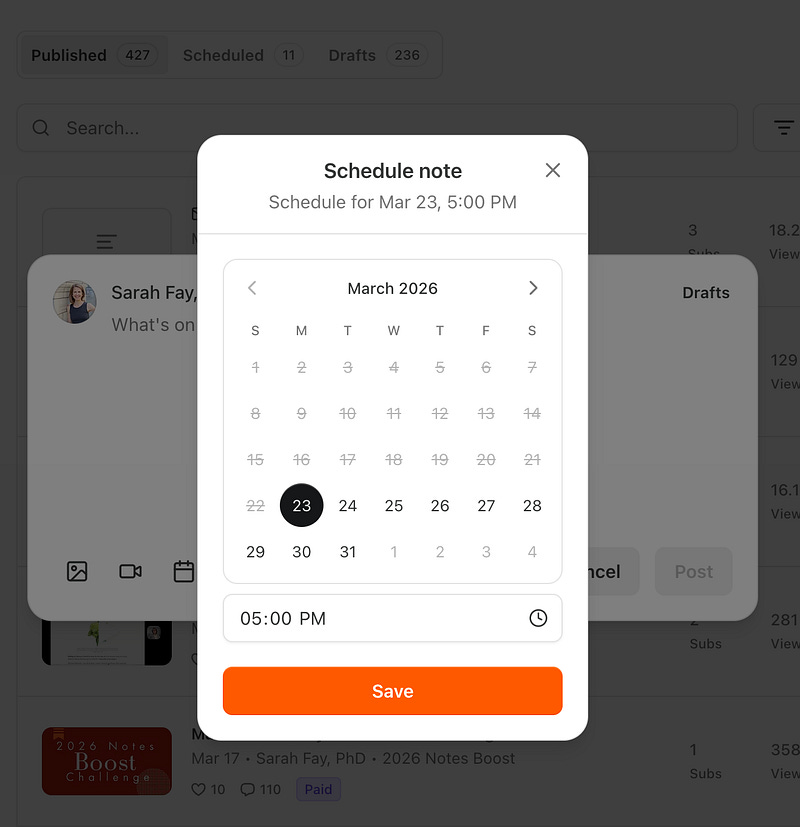 We can schedule Notes! (Been waiting for this since I was in the beta version of Notes in 2023—3 years and worth the wait.)