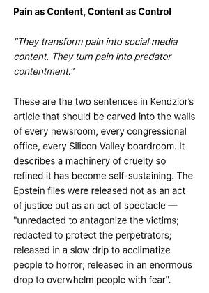 Eyewitness for History by Thomas Drake “They transform pain into social media content. They turn pain into predator contentment. The pursuit of truth is always noble: but not the sluggish or careless release of a partial reveal. Not when it’s about a pedophile rape cabal of ethno-supremacist billio…
