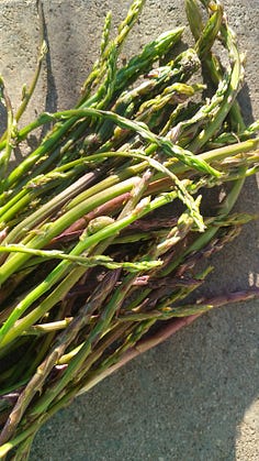 Foraged asparagus. I made a simple fettuccine with spring onions and these beauties. I felt quite smug knowing I got to them before my neighbor did.