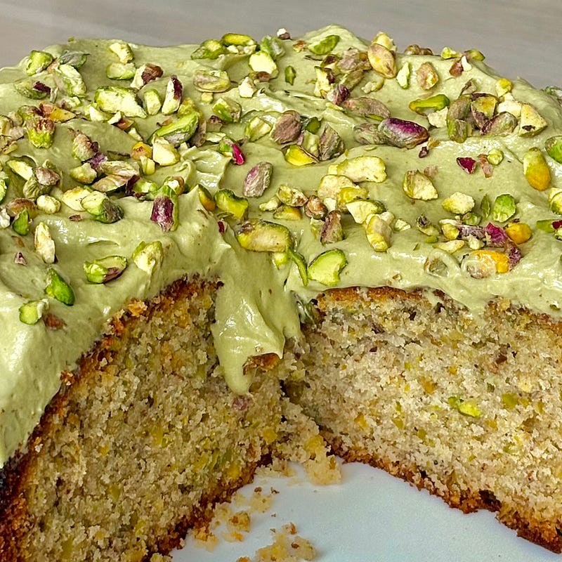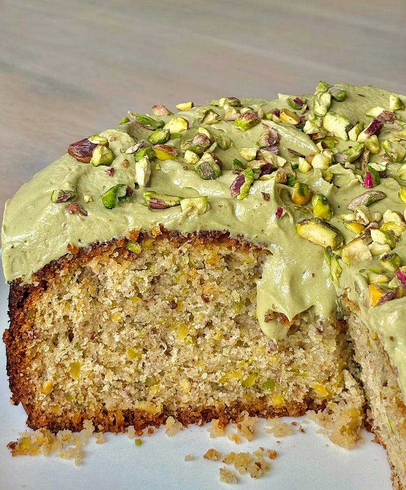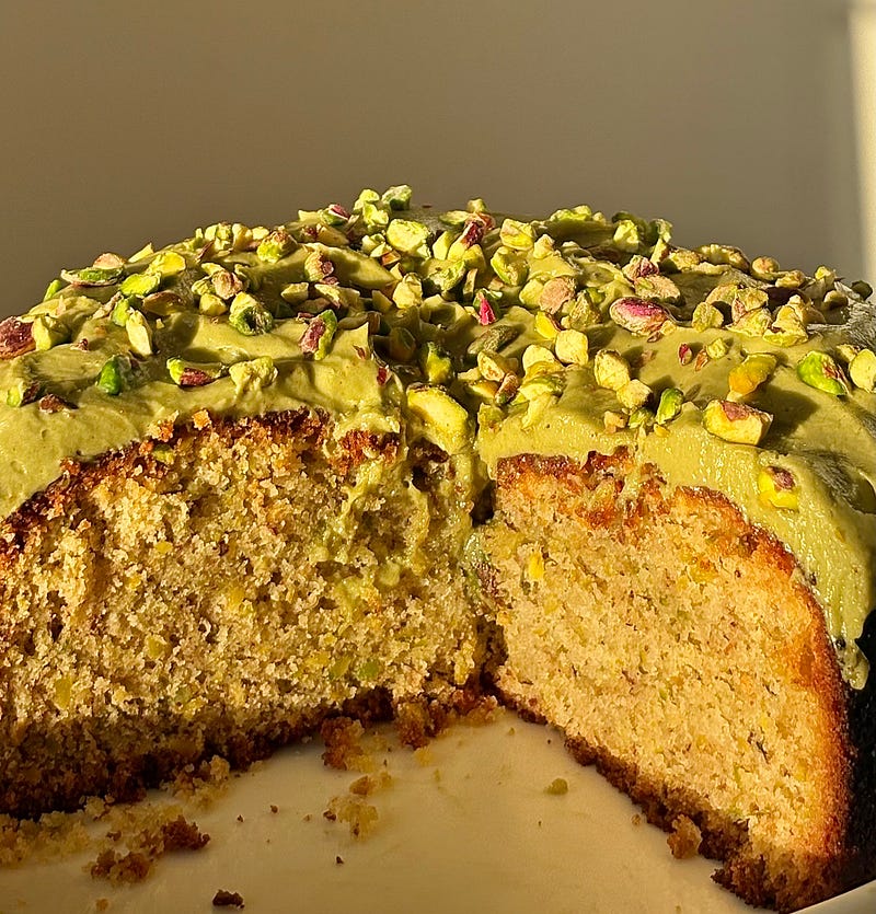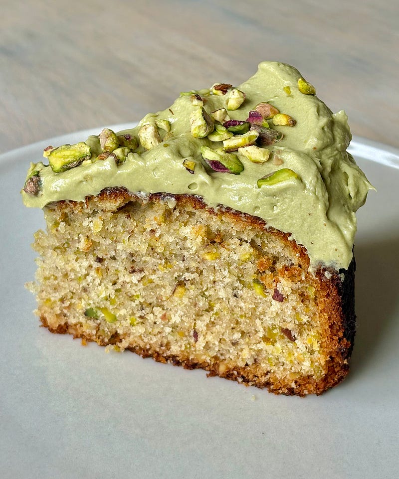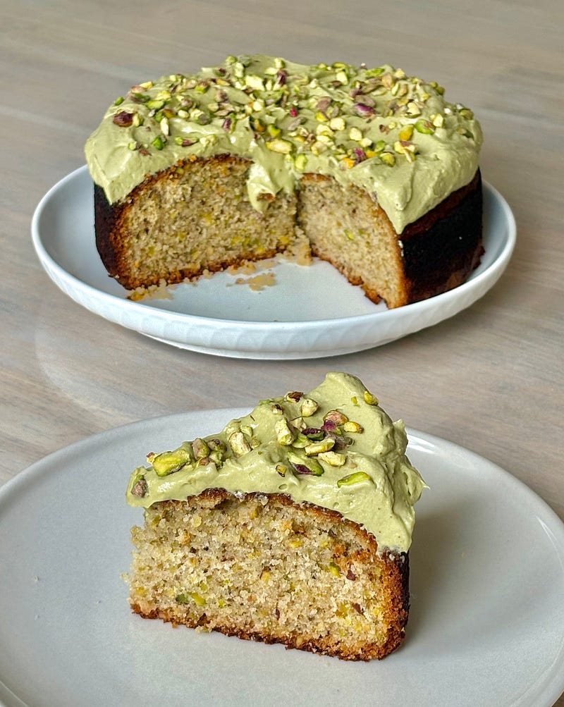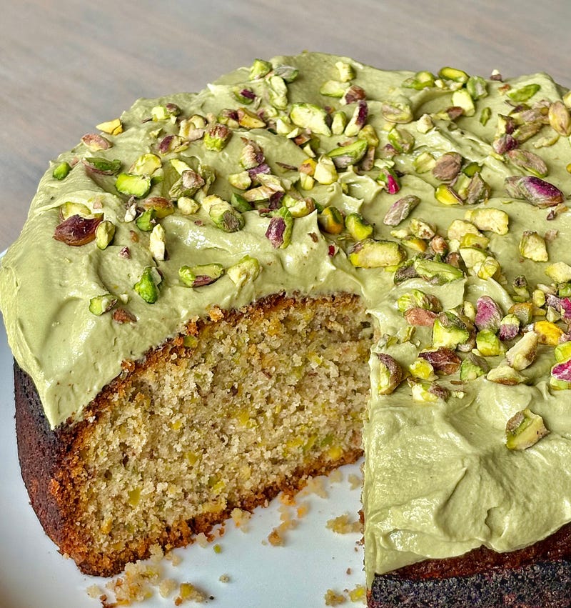 pistachio olive oil cake, whipped pistachio cream crushed pistachios pistachio everything! Recipe is posted ✨