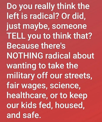 We repeat - there's NOTHING radical about wanting to take the military off our streets, fair wages, science, healthcare, or to keep our kids fed, housed, and safe.