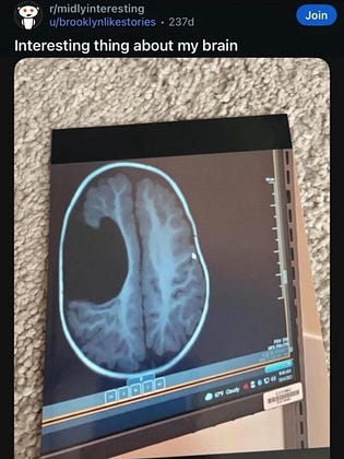 Amazing how so many Redditors turn out to have significant portions of their brains missing when they have an MRI scan.