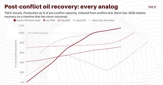 Every post-conflict oil recovery in the modern era took longer than the market expected. Kuwait, the best case, took two and a half years under perfect conditions. Qatar's LNG damage is three to five years minimum. The forward curve is pricing weeks for both.